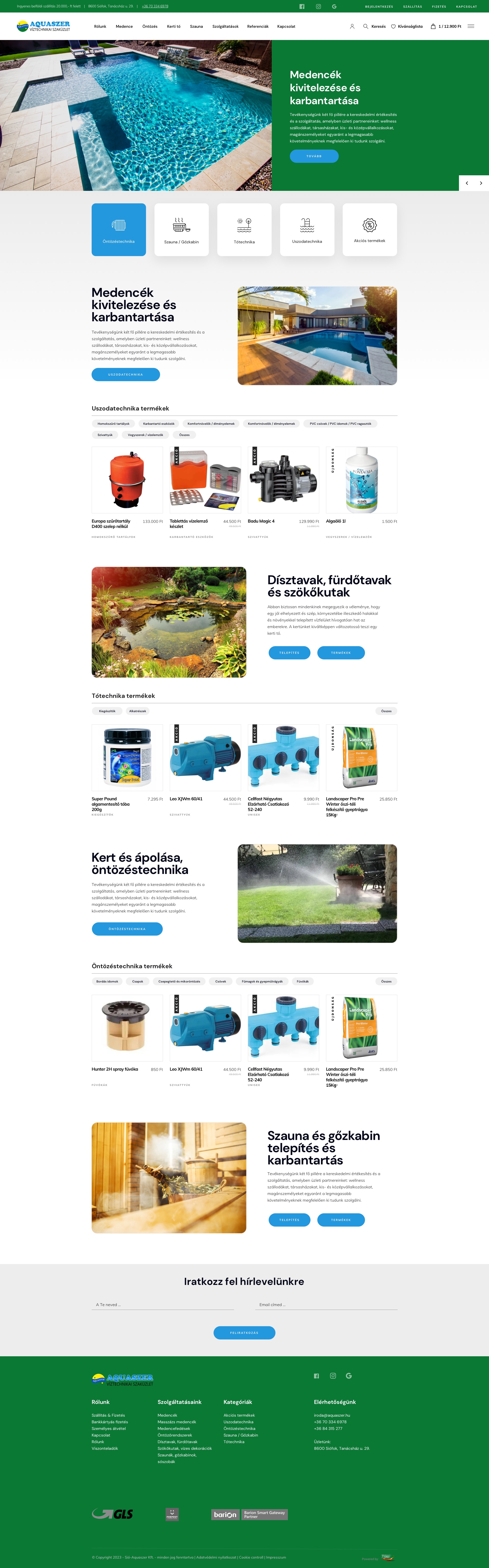 Medence, öntözés és jakuzzi tervezéssel, kivitelezéssel és értékesítéssel foglalkozó siófoki székhelyű cégnek készítettük webáruházat, ahol számos integrációt végeztünk el a rendelések automatizációjához.