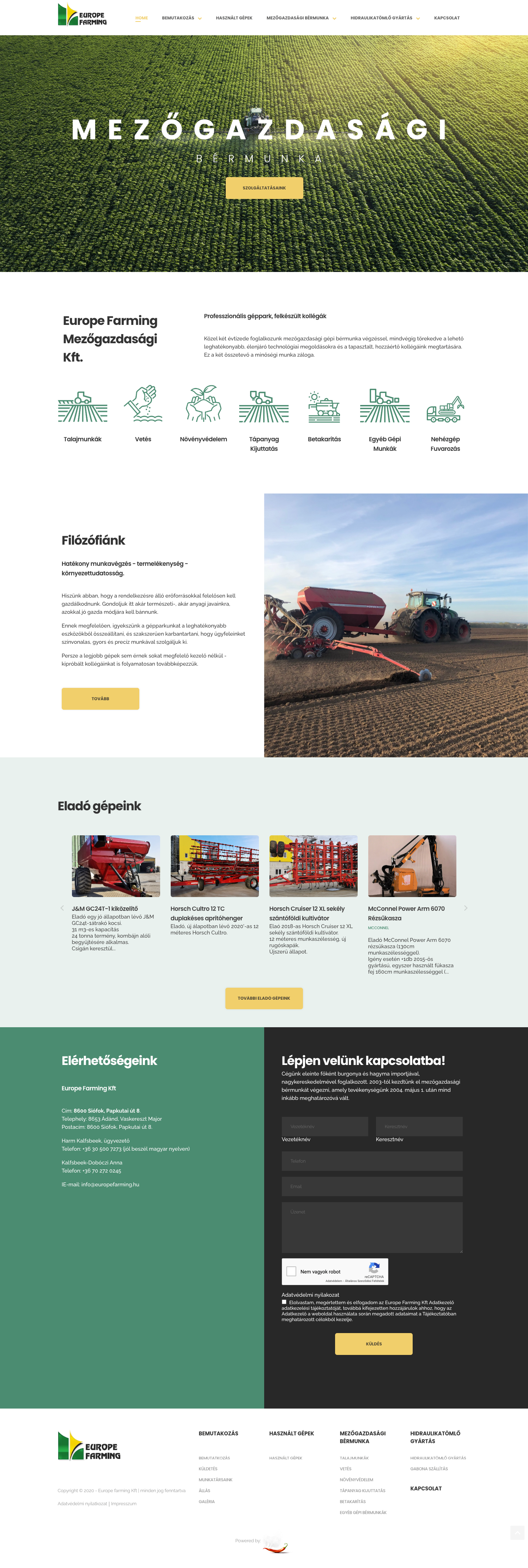 Közel két évtizede foglalkoznak mezőgazdasági gépi bérmunka végzéssel, mindvégig törekedve a lehető leghatékonyabb, élenjáró technológiai megoldásokra és a tapasztalt, hozzáértő kollégáik megtartására.