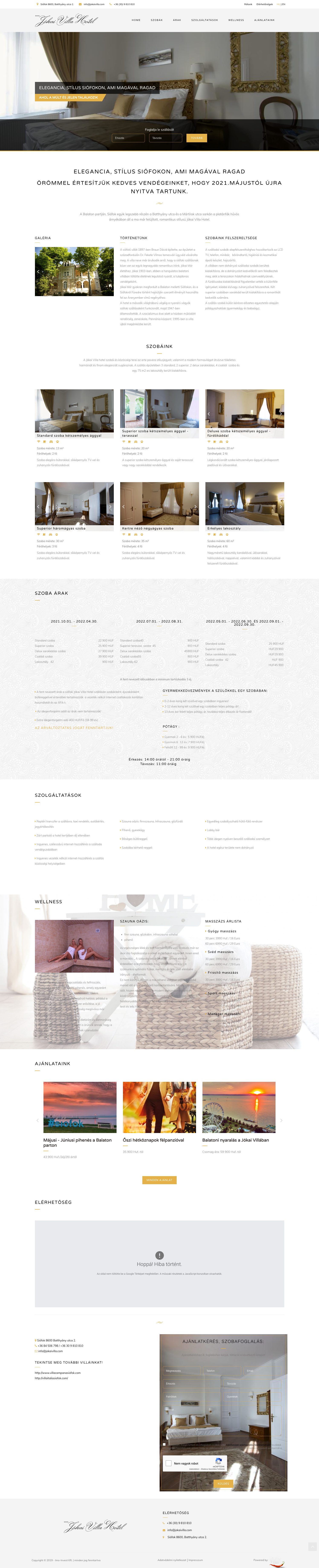 Balaton partján, Siófok egyik legszebb részén a Batthyány utca és a Mártírok utca sarkán a platánfák hűvös árnyékában áll a ma már felújított, romantikus stílusú Jókai Villa Hotel. A Hotel stílusához jól illik az általunk készített weboldal.
