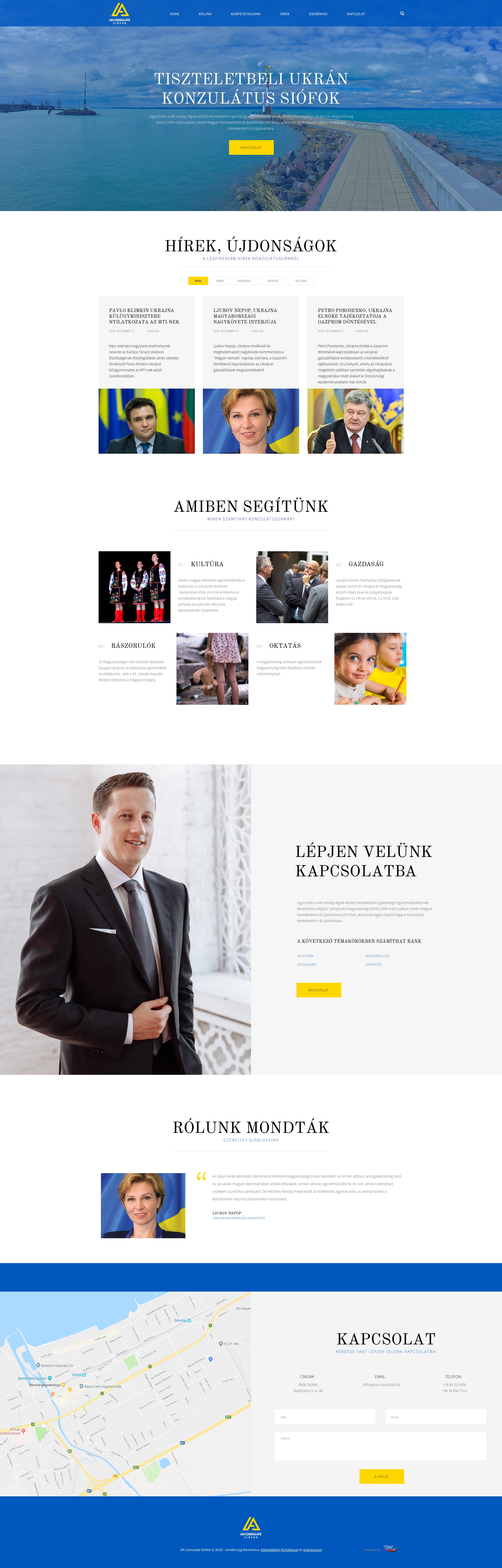 2018. november 7-én Ukrajna Rendkívüli és Meghatalmazott Nagykövete, Ljubov Nepop valamint Magyarország Külgazdasági és Külügyminisztériuma tiszteletbeli konzuli hálózatért felelős miniszteri biztosa, Suha György ünnepélyes keretek között megnyitották Ukrajna Siófoki Tiszteletbeli Konzulátusát.